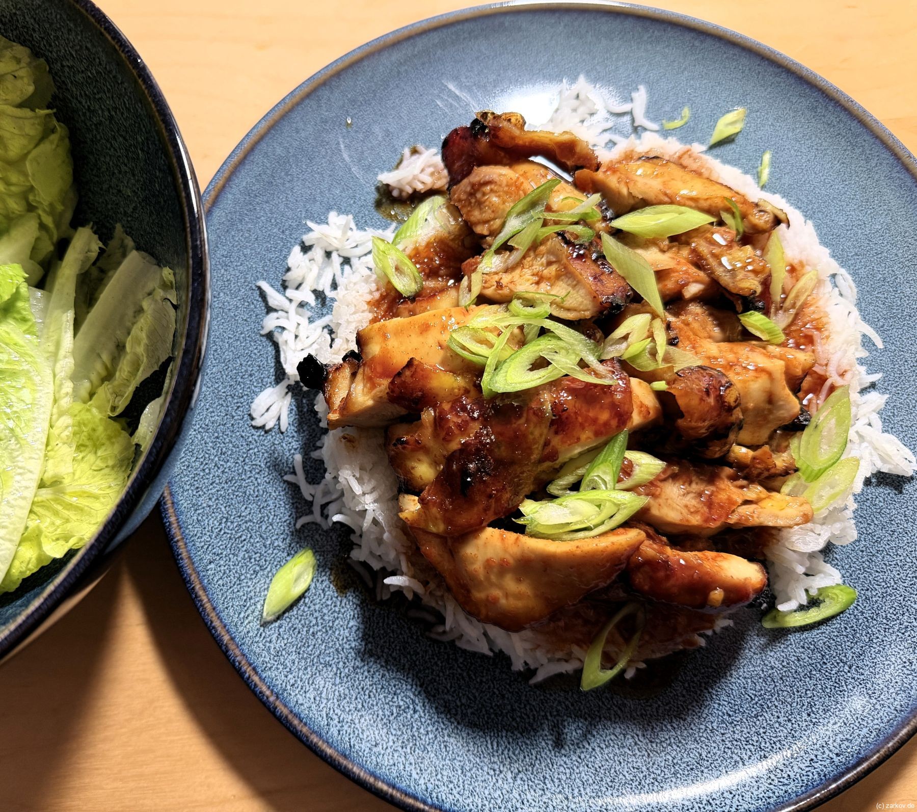Zeit, mal wieder den Airfryer anzuwerfen. Und wie immer nicht um zu frittieren (denn das kann der nicht) sondern, um mit der Umluft zu erhitzen. Ich war gespannt, wie das dieses Mal geht, da es wieder um mariniertes Fleisch geht und mir gerade zuckerhaltige Marinaden zu oft verbrannt sind. Aber hier ging das wunderbar und das Ergebnis war saftig, leicht pikant und geschmacklich so, wie erhofft. Ein schnelles Mittagessen ohne viel Aufwand.